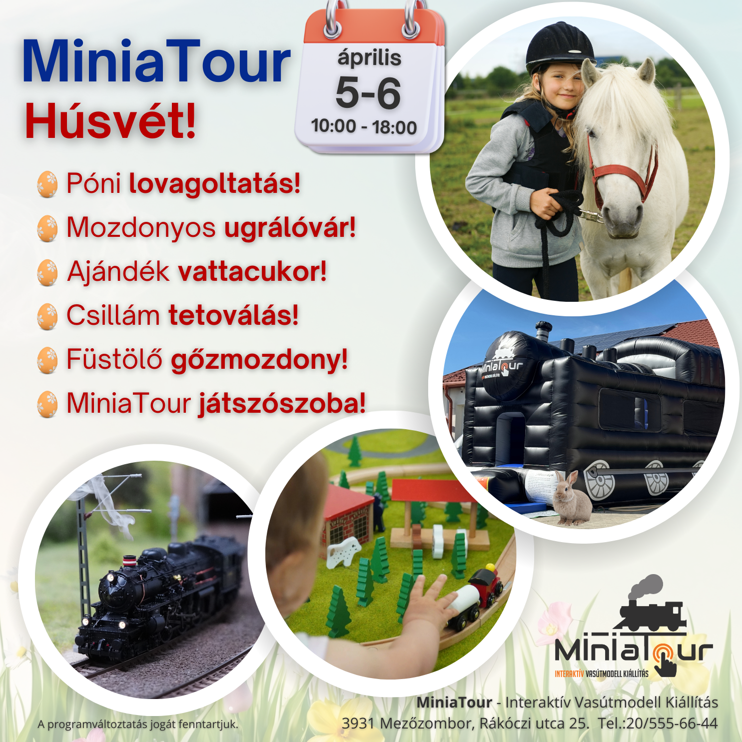 A MiniaTour kiállításon menetrend szerint közlekedik a füstöt eregető gőzmozdony, amely különleges látványával idézi meg a régi idők hangulatát.