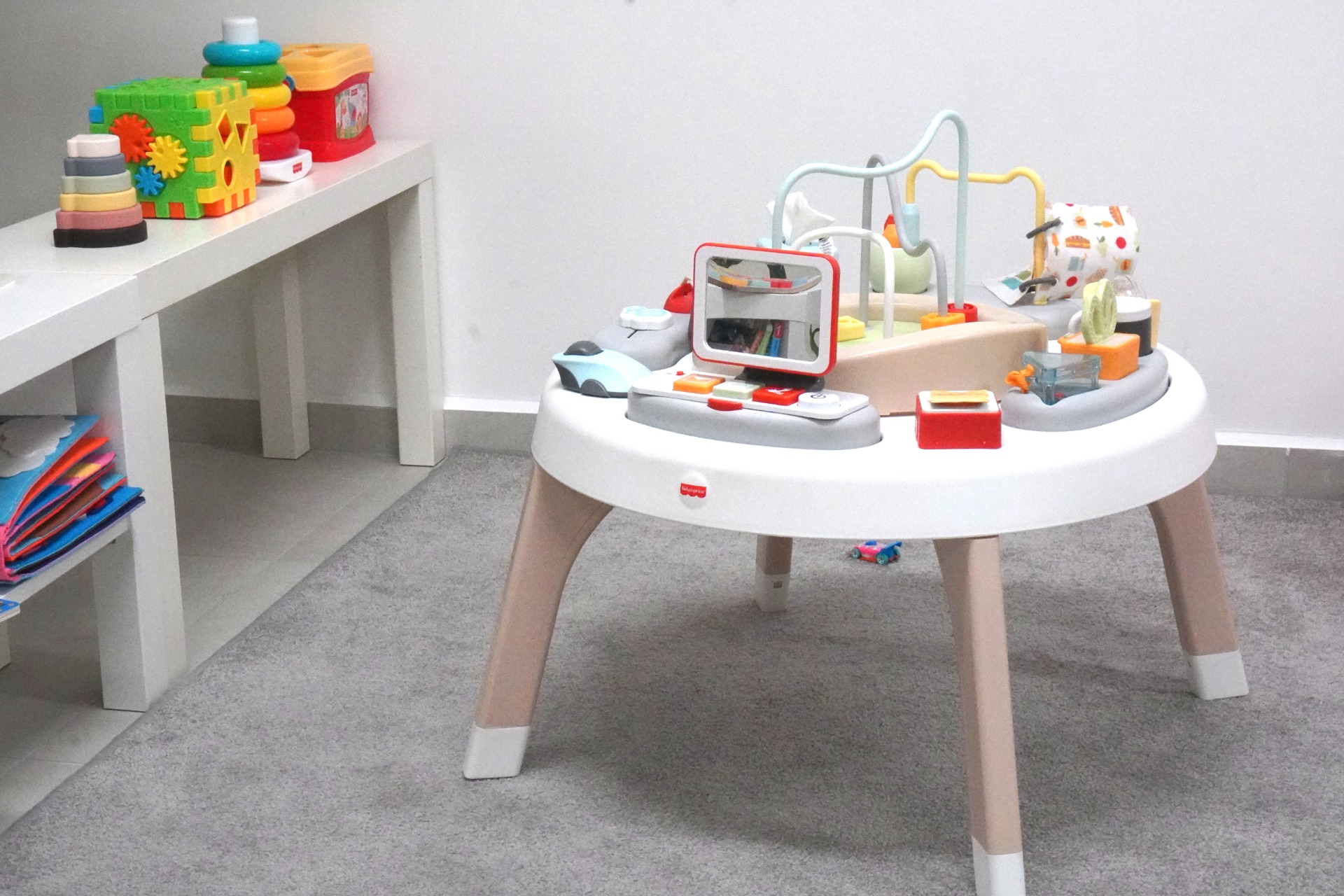A játszószoba télen meleg, nyáron klimatizált, padlóján puha szőnyeg biztosítja a kellemes közérzetet.